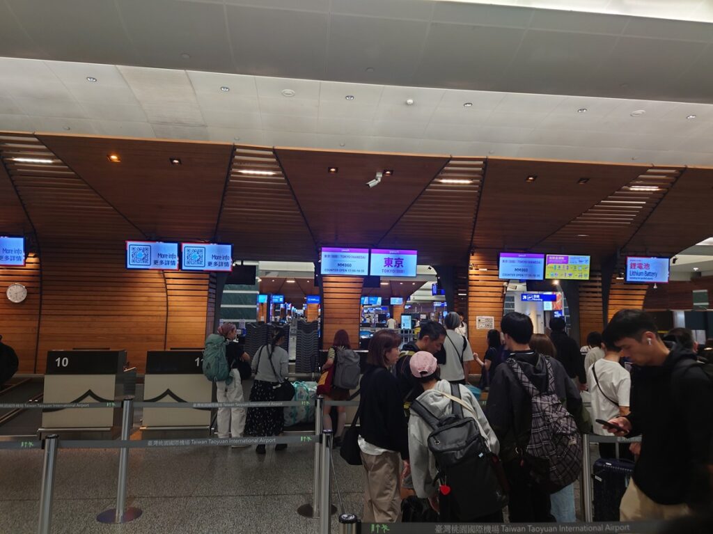 ・覚書:ピーチのチェックインカウンターは桃園空港ターミナル1の12番、メトロから1番遠い場所。