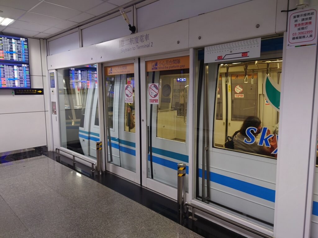 桃園空港は新しい第2ターミナルの方がお店が充実しているため、無料のシャトル列車で移動します。