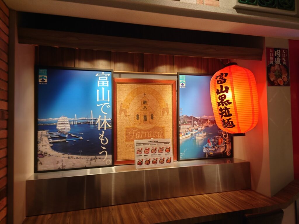 5階南エリアのラーメン店にあった「富山で休もう」のポスター。私、福井県民なんですが。