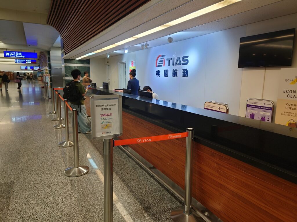 なお、数時間後にピーチのチケット販売カウンターは4番カウンター横にある TIAS 桃園航勤の常設カウンターであることを見つけました。