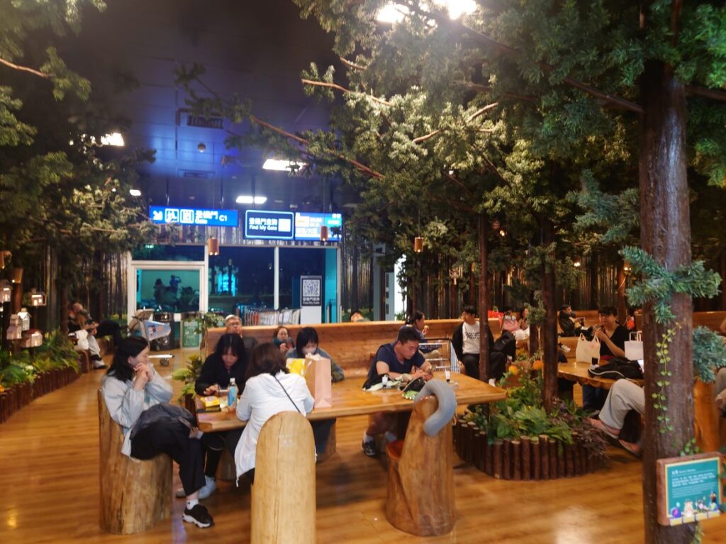 搭乗口前の待合室、上の森の下のフロアです。
