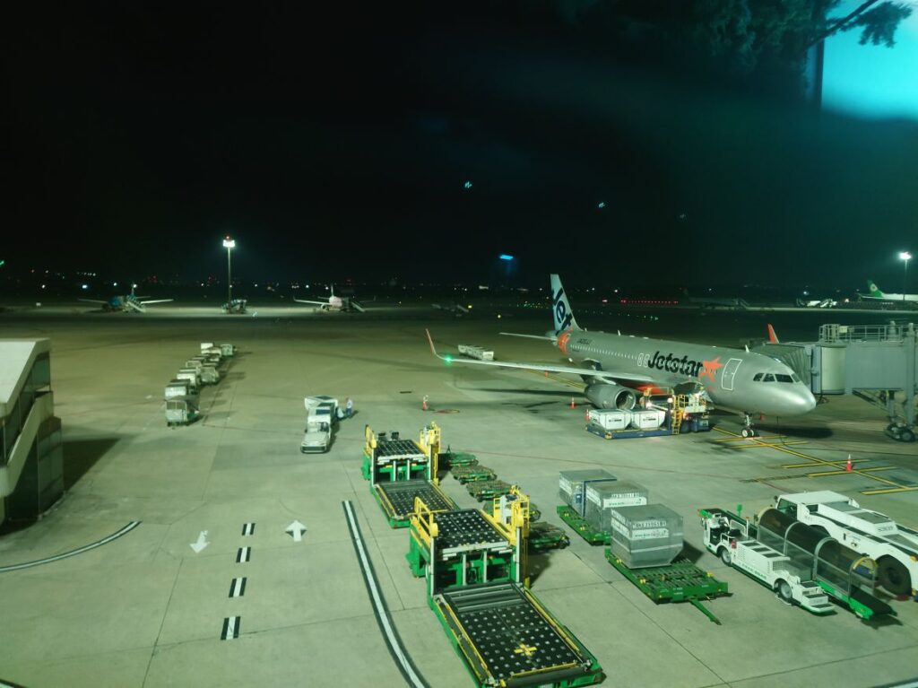 1時50分、C1搭乗口前に移動します。これから乗るジェットスターA320がいました。
