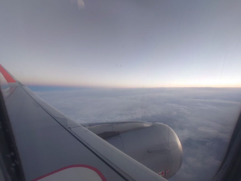 関空までのフライト時間は3時間、ふと目を覚まし外を見ると朝日が見えました。