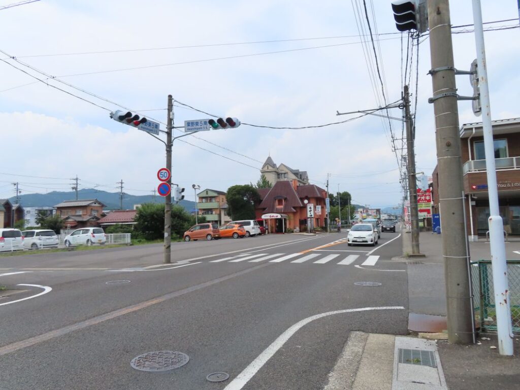 店舗左側、店舗前は4車線の国道19号です、中央分離帯があるため右折入庫はできません。