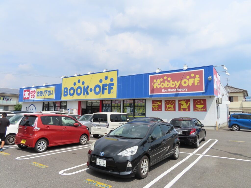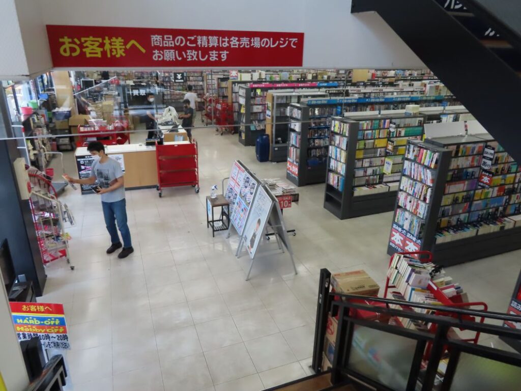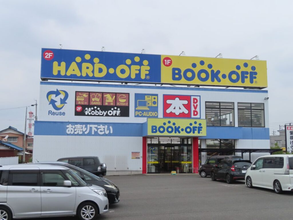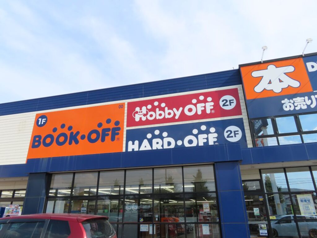 店舗外観です。1階にブックオフ、2階にハードオフ、ホビーオフがあります。