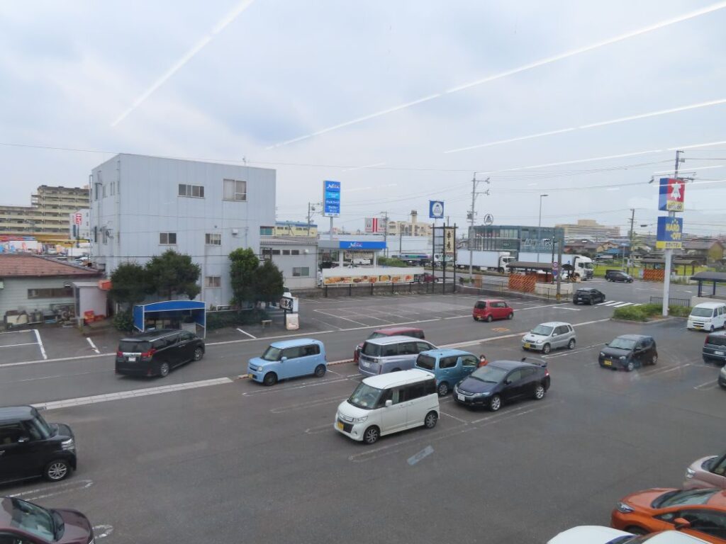 店舗左側、店舗前は4車線の岐阜県道77号線です、中央分離帯があるため右折入庫はできません。