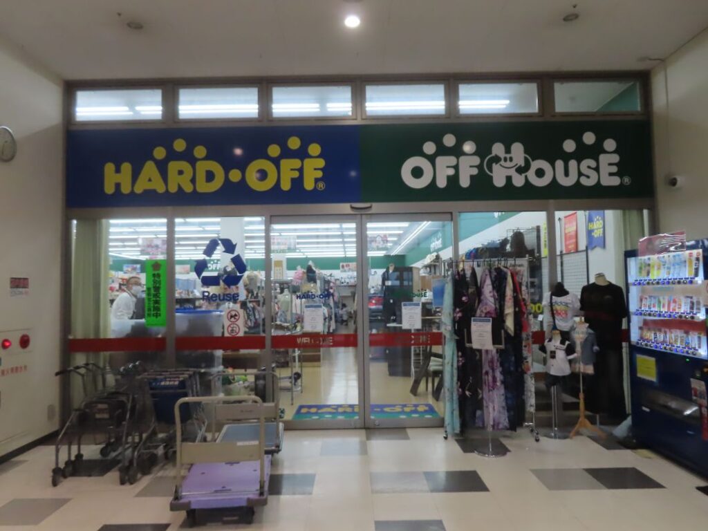 店舗外観です。1階にハードオフとオフハウスが入居しています。